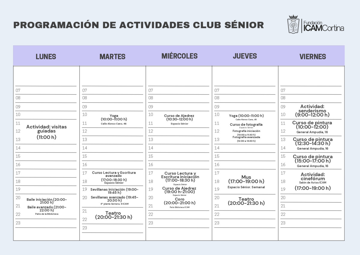 El Club Sénior de la Fundación ICAM Cortina sirve de punto de encuentro para conectar a la Abogacía veterana y generar espacios de reflexión y debate, fomentando el bienestar personal y la activación social a través de actividades culturales y de ocio, contribuyendo a su desarrollo personal y cuidando de su bienestar físico, mental y psicosocial.
